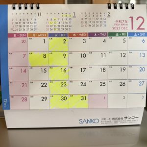 年始(来月)は4日(日)から営業するのでご予約もお待ちしております。